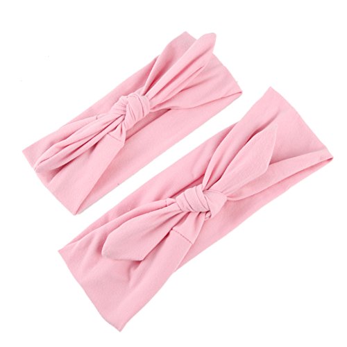 Domybest 親子 ヘアバンド ベビー ママ 2点セット カチューシャ 髪飾り ヘアアクセサリー ウサギの耳 女の子 新生児 赤ちゃん 出産祝い 内祝い お宮参り 誕生日 100日記念 こどもの日 記念撮影 初節句に 10色選べる (ピンク)