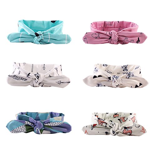 Domybestベビー ヘアバンド 6色セット キッズ 子供 リボン うさぎ耳 可愛いプリント カチューシャ 髪飾り ヘアアクセサリー 女の子 新生児 赤ちゃん 出産祝い 内祝い お宮参り 誕生日 100日記念 こどもの日 記念撮影 初節句に