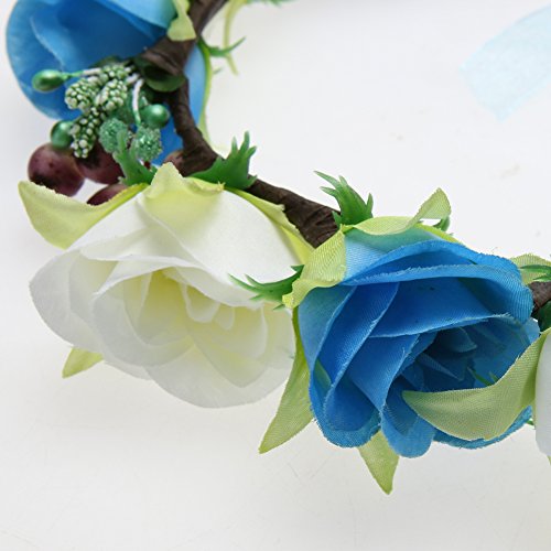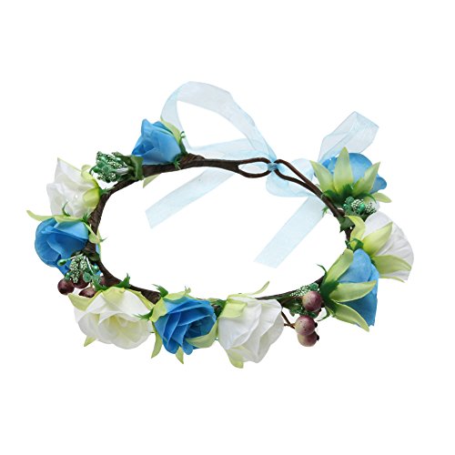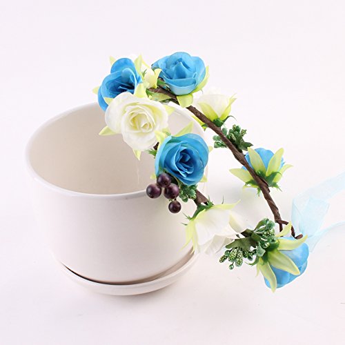 Domybest子供 花冠 フラワーヘアバンド ヘッドドレス ヘアアクセサリー 結婚式 ブライダル 子供用 髪飾り 女の子 キッズ 髪飾り 花かんむり ウェディング フラワー ヘッド 5色選べる (ブルー)