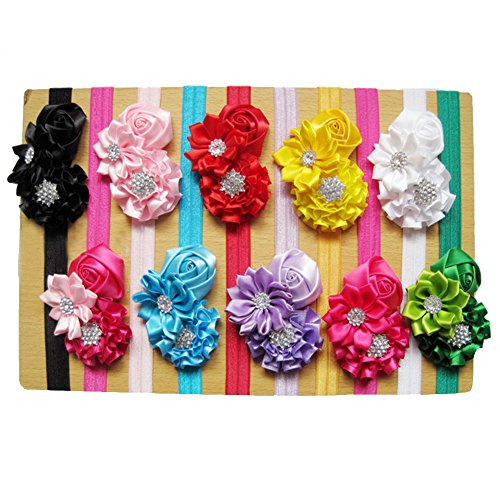 Domybestベビー ヘアバンド セット 10色セット キッズ 子供 リボン フラワー カチューシャ 髪飾り ヘアアクセサリー 女の子 新生児 赤ちゃん 出産祝い 内祝い お宮参り 誕生日 100日記念 こどもの日 記念撮影 初節句に