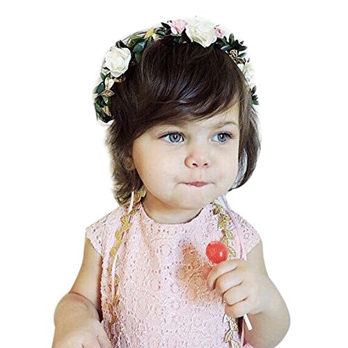 Domybest花冠 キッズ フラワーヘアバンド 花かんむり ヘッドドレス フローラル ヘアアクセサリー 造花 髪飾り 結婚式 新生児 赤ちゃん 出産祝い 内祝い お宮参り 誕生日 100日記念 こどもの日 記念撮影 初節句に 撮影小道具