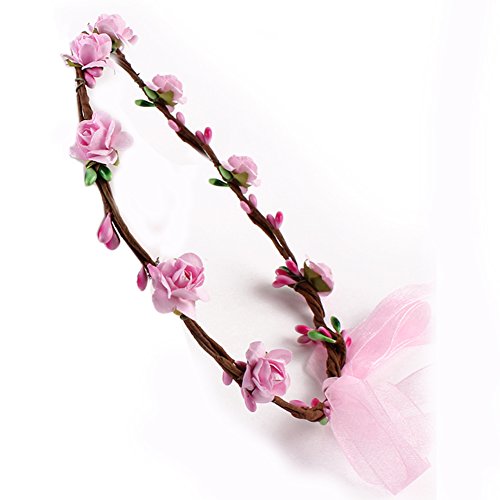 Domybest子供 ベビー 花冠 フラワーヘアバンド ヘッドドレス ヘアアクセサリー 結婚式 ブライダル 子供用 髪飾り 女の子 キッズ 髪飾り 花かんむり ウェディング フラワー ヘッド 誕生日 パーティー 撮影 ビーチ 9色選べる (ピンク)