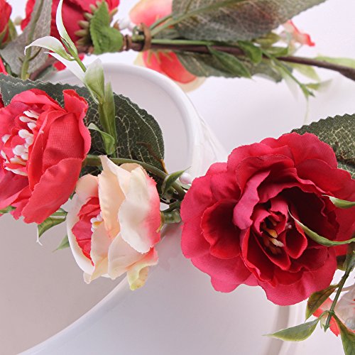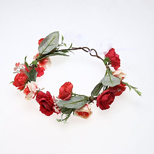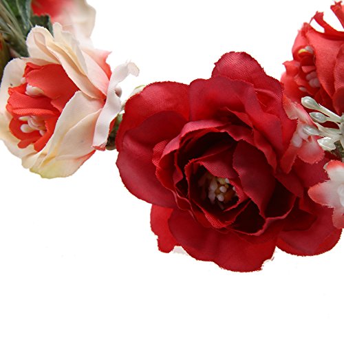 Domybest子供 花冠 フラワーヘアバンド ヘッドドレス ヘアアクセサリー 結婚式 ブライダル 子供用 髪飾り 女の子 キッズ 髪飾り 花かんむり ウェディング フラワー ヘッド 5色選べる (レッド)