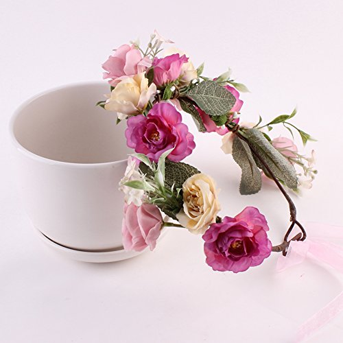 Domybest子供 花冠 フラワーヘアバンド ヘッドドレス ヘアアクセサリー 結婚式 ブライダル 子供用 髪飾り 女の子 キッズ 髪飾り 花かんむり ウェディング フラワー ヘッド 5色選べる (バラ色)