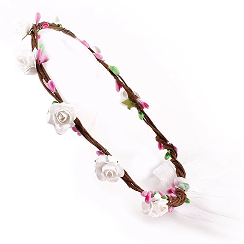 Domybest子供 ベビー 花冠 フラワーヘアバンド ヘッドドレス ヘアアクセサリー 結婚式 ブライダル 子供用 髪飾り 女の子 キッズ 髪飾り 花かんむり ウェディング フラワー ヘッド 誕生日 パーティー 撮影 ビーチ 9色選べる (ベージュ)