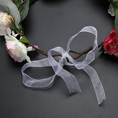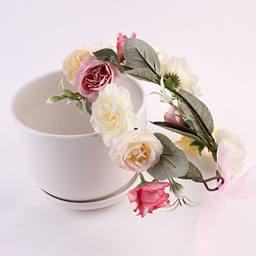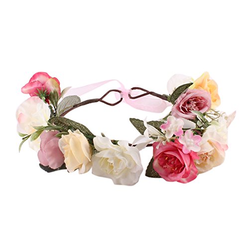 Domybest子供 花冠 フラワーヘアバンド ヘッドドレス ヘアアクセサリー 結婚式 ブライダル 子供用 髪飾り 女の子 キッズ 髪飾り 花かんむり ウェディング フラワー ヘッド 5色選べる (ピンク)