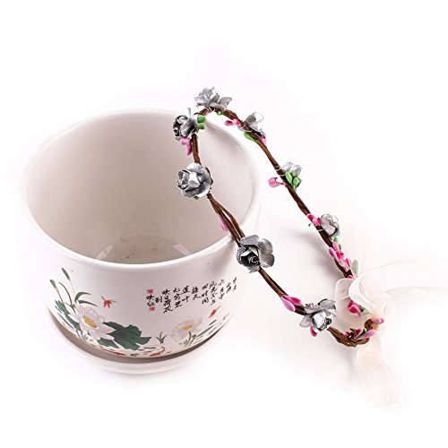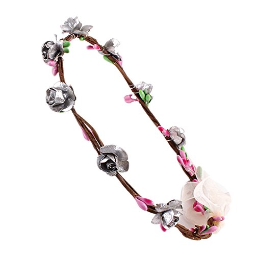 Domybest子供 ベビー 花冠 フラワーヘアバンド ヘッドドレス ヘアアクセサリー 結婚式 ブライダル 子供用 髪飾り 女の子 キッズ 髪飾り 花かんむり ウェディング フラワー ヘッド 誕生日 パーティー 撮影 ビーチ 9色選べる (銀色)
