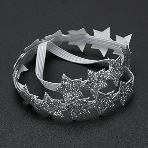 Domybest ベビー ヘアバンド キッズ 子供 キラキラスター カチューシャ 髪飾り ヘッドバンド ヘアアクセサリー 女の子 新生児 赤ちゃん 出産祝い 内祝い お宮参り 誕生日 100日記念 こどもの日 写真 撮影 寝相アート 2色選べる (銀色)