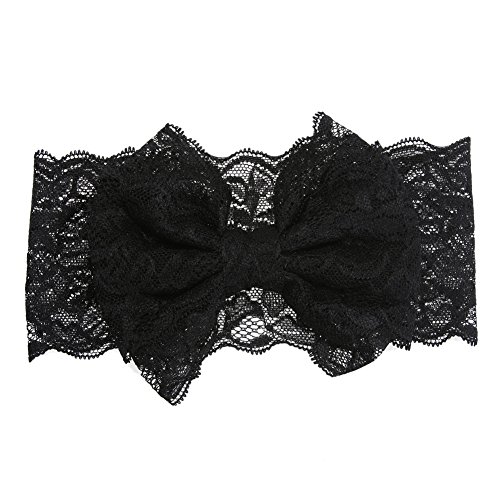 Domybestベビー ヘアバンド キッズ 子供 リボン 柔らかいレース カチューシャ 髪飾り ヘアアクセサリー 女の子 新生児 赤ちゃん 出産祝い 内祝い お宮参り 誕生日 100日記念 こどもの日 記念撮影 初節句に 10色選べる (ブラック)