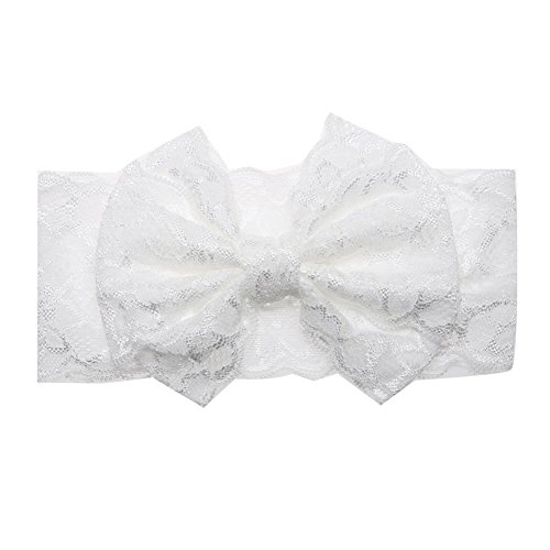 Domybestベビー ヘアバンド キッズ 子供 リボン 柔らかいレース カチューシャ 髪飾り ヘアアクセサリー 女の子 新生児 赤ちゃん 出産祝い 内祝い お宮参り 誕生日 100日記念 こどもの日 記念撮影 初節句に 10色選べる (白)