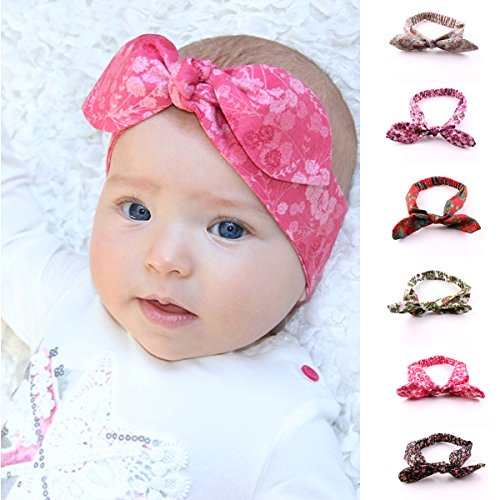 Domybestベビーヘアバンド セット キッズ 子供 うさぎ耳 6色セット 花柄 カチューシャ 髪飾り ヘアアクセサリー 女の子 新生児 赤ちゃん 出産祝い 内祝い お宮参り 誕生日 100日記念 こどもの日 記念撮影 初節句に