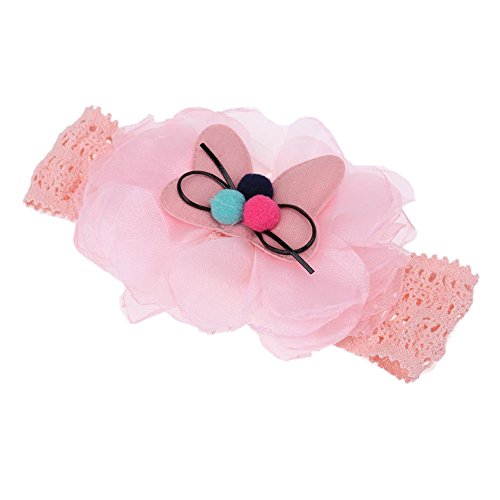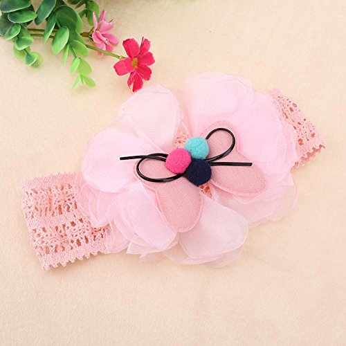 Domybestベビーヘアバンド レース キッズ 子供 カチューシャ お花 髪飾り ヘアアクセサリー 新生児 赤ちゃん 出産祝い 祝い 誕生日 記念日 撮影に (ピンク)
