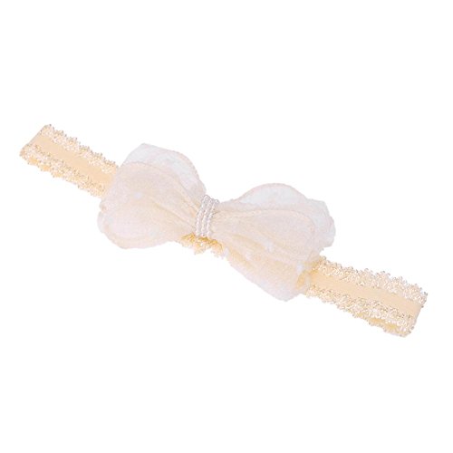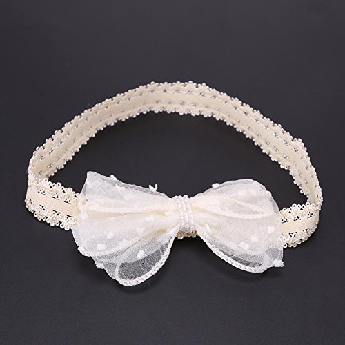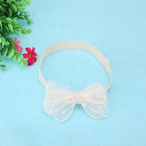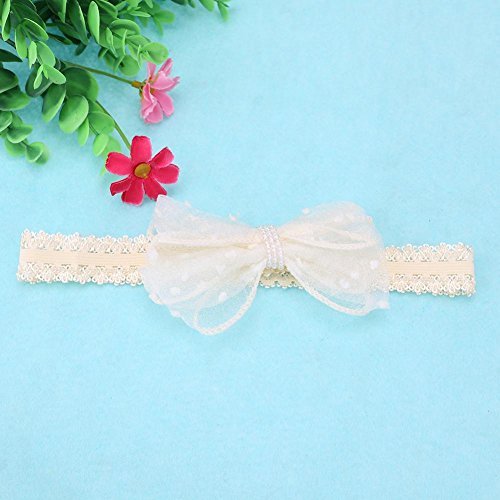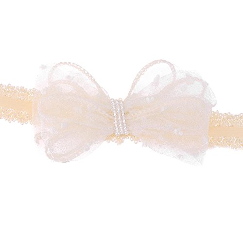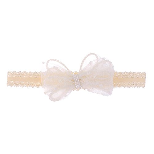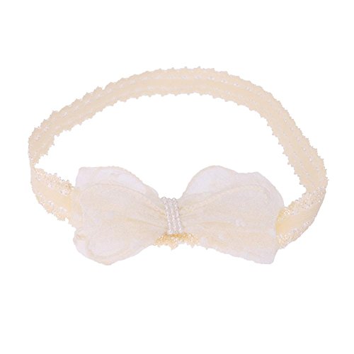 Domybestベビーヘアバンド レースリボン パール 髪飾り キッズ 子供 カチューシャ ヘアアクセサリー 新生児 赤ちゃん 出産祝い 誕生日 記念日 撮影 (B ベージュ)