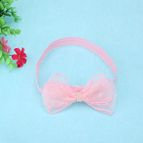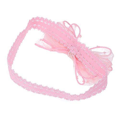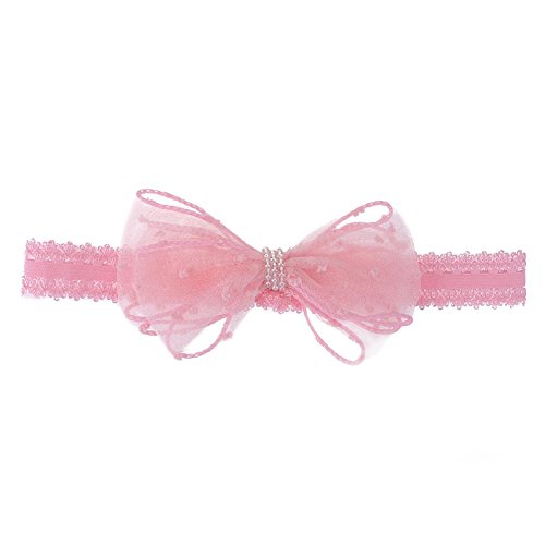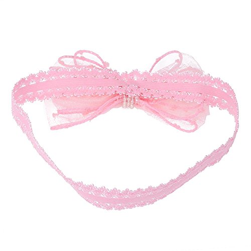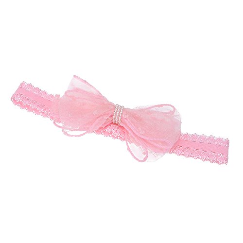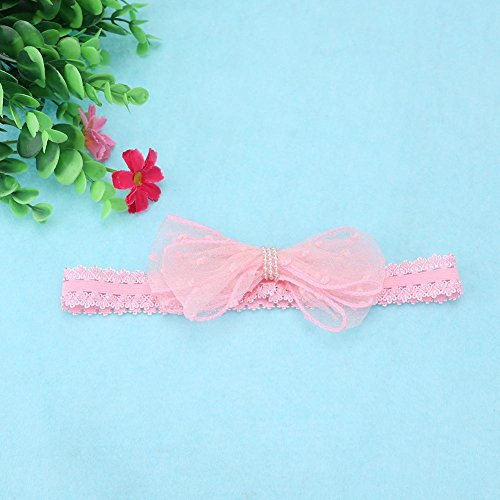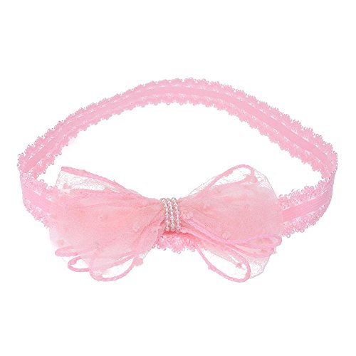Domybestベビーヘアバンド レースリボン パール 髪飾り キッズ 子供 カチューシャ ヘアアクセサリー 新生児 赤ちゃん 出産祝い 誕生日 記念日 撮影 (A ピンク)