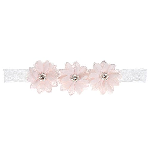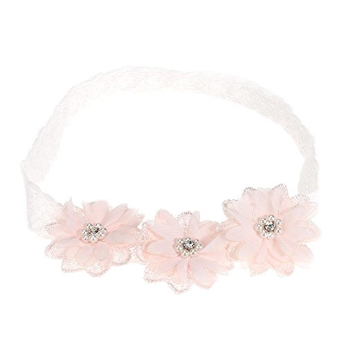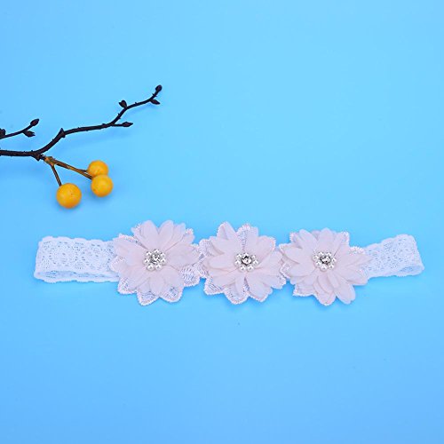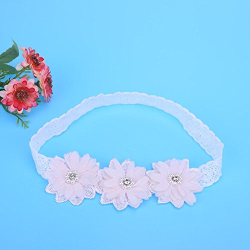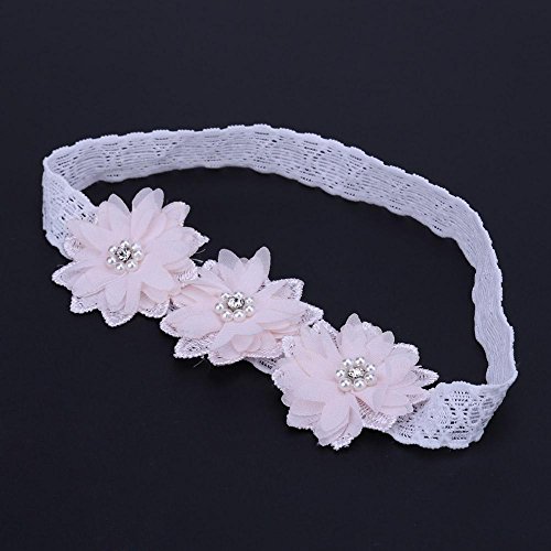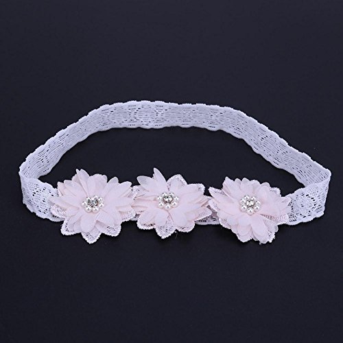Domybestベビーヘアバンド 髪飾り レースベルト 花とパールの装飾 出産祝い 誕生日 記念日 写真小道具 0-3歳に適して