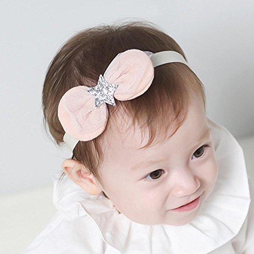 Domybestベビーヘアバンド 髪飾り レースベルト 弓の装飾のスタースパンコールを装飾 誕生日 出産祝い 百日記念 写真小道具 0-3歳に適して 2色