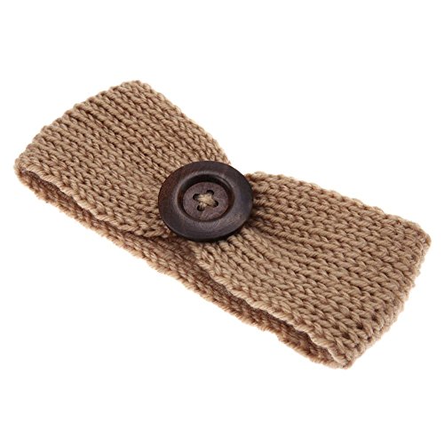 Domybest 秋冬 子供ヘアバンド コットンのベルト かわいい木製のボタンを飾る 編み物 良い弾力性 暖かく保つ 百日記念 誕生日 出産祝い 写真小道具 0-3歳に適して 9色
