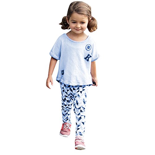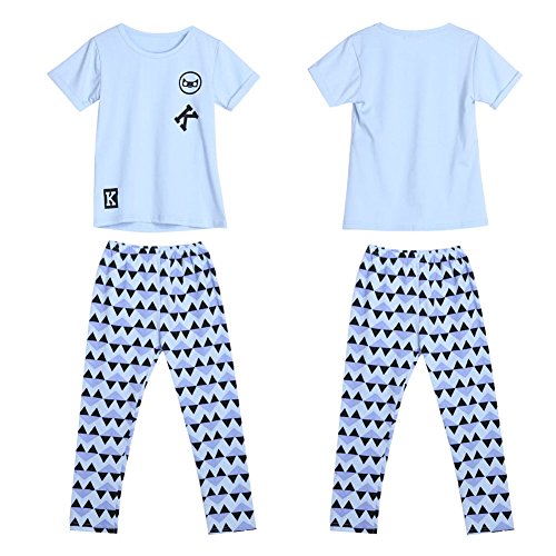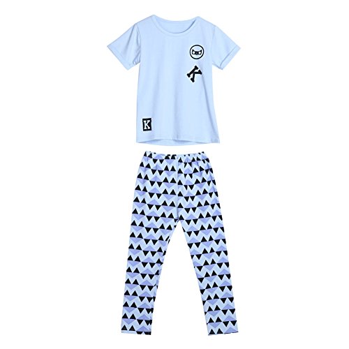 Domybest 子供服 キッズ Tシャツ 上下 2点セット 男の子 女の子 半袖 普段着 ベビー服 Tシャツ&パンツ 春夏 ルームウェア セットアップ パジャマ ロングパンツ (130(身長125-135cm))