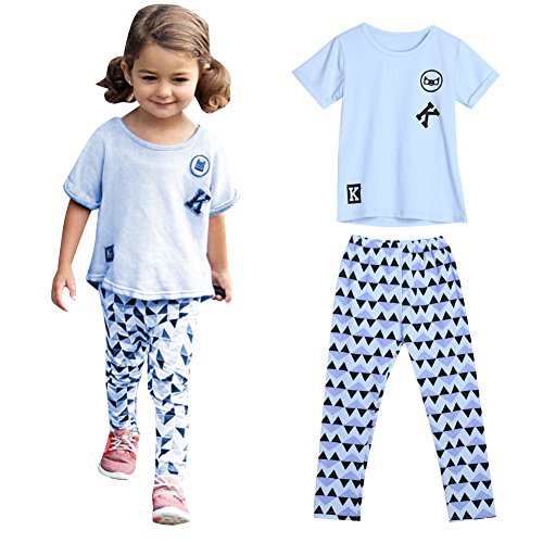 Domybest 子供服 キッズ Tシャツ 上下 2点セット 男の子 女の子 半袖 普段着 ベビー服 Tシャツ&パンツ 春夏 ルームウェア セットアップ パジャマ ロングパンツ (120(身長115-125cm))