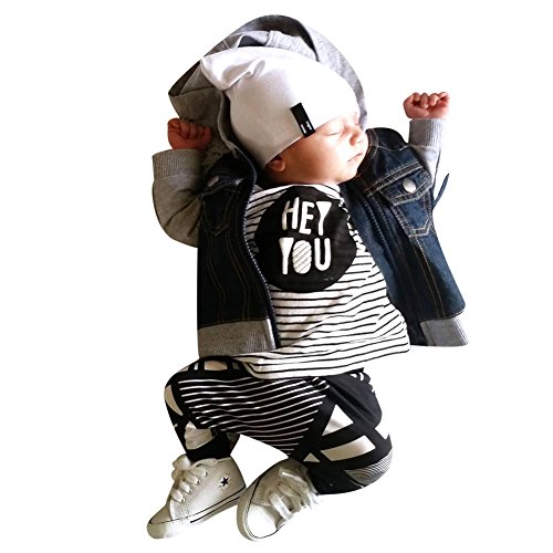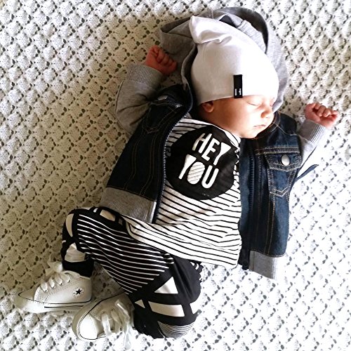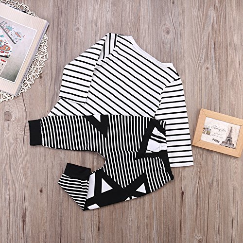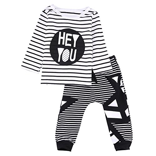 Domybestベビー服 子供服 Tシャツ & パンツ 上下 2点セット 長袖 ストライプ柄 英字プリント ルームウェア パジャマ 男の子 女の子 春 秋 セットアップ 普段着 カジュアル (70(身長65-75cm))
