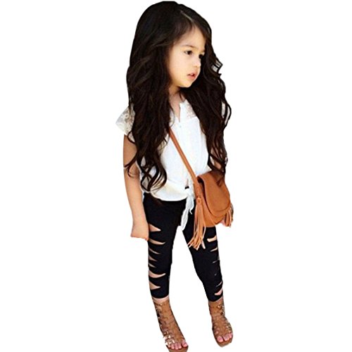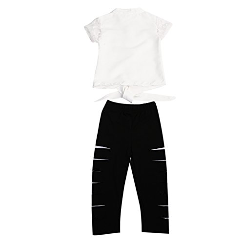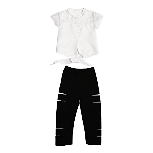 Domybest子供服 女の子 セットアップ キッズ服 半袖Tシャツ +パンツ 上下 2点セット レース 穴あきパンツ 赤ちゃん キッズ ガールズ カジュアル お出かけ 普段着 春 夏 秋 (90(1-2歳))