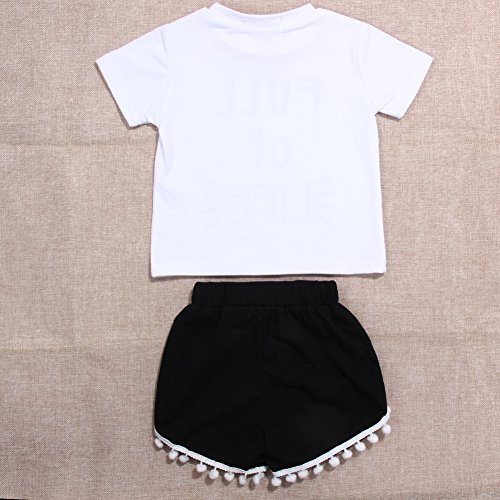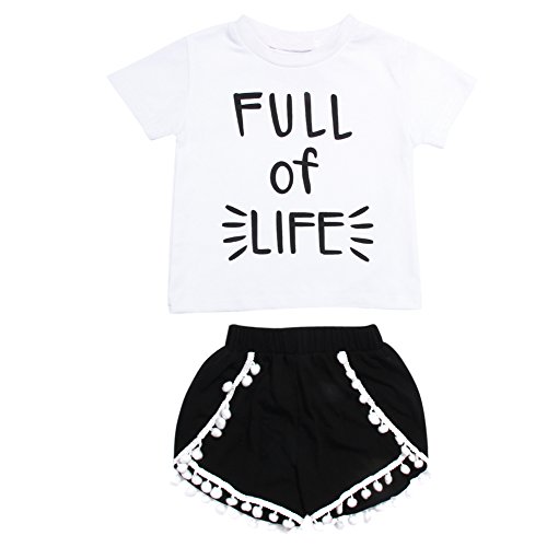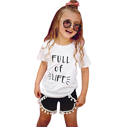 Domybest子供服 女の子 セットアップ キッズ服 キッズTシャツ 半袖Tシャツ+ショートパンツ 上下 2点セット 英字プリント タッセル 赤ちゃん キッズ ガールズ カジュアル お出かけ 普段着 春 夏 秋 (110(3-4歳))