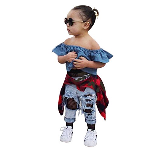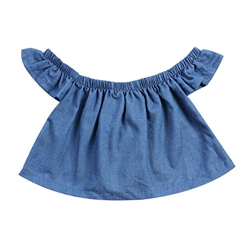 Domybest ベビー服 子供服 女の子 トップス Tシャツ ブラウス オフショルダー 女の子 ガールズ 春 夏 秋 通園 日常着 お出かけ カジュアル (110(3-4歳))