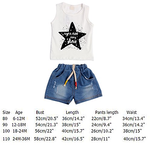 Domybest ベビー服 Tシャツ セットアップ 上下セット 男の子 タンクトップ+ショートデニムパンツ 2点セット かっこいい 星プリント キッズ 赤ちゃん 春 夏 秋 ルームウェア セットアップ お出かけ 普段着 (90(12-18ヶ月), ホワイト)