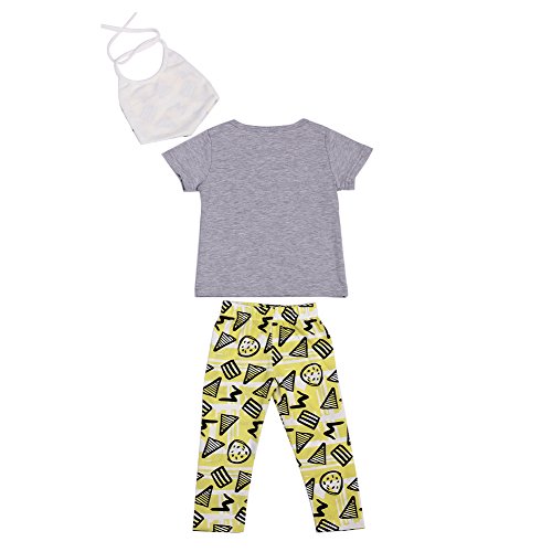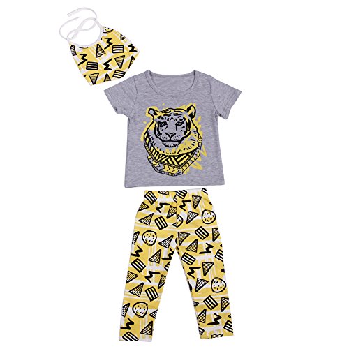 Domybest 子供服 ベビー服 キッズ Tシャツ 上下セット 男の子 半袖Tシャツ+ロングパンツ+ビブ 3点セット プリント 春 夏 秋 ルームウェア セットアップ パジャマ お出かけ 普段着 (70(0-1歳))