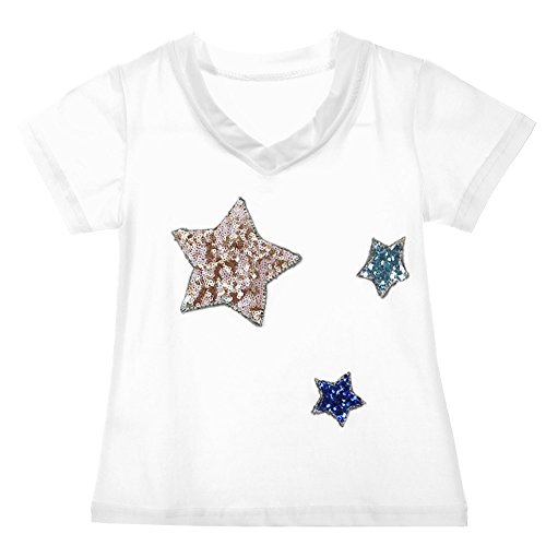 Domybest 子供服 Tシャツ 半袖 キッズ Tシャツ トップス 女の子 ガールズ 星 Vネック 春 夏 秋 通園 日常着 ルームウエア カジュアル (5-6歳, ホワイト)