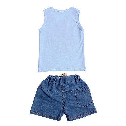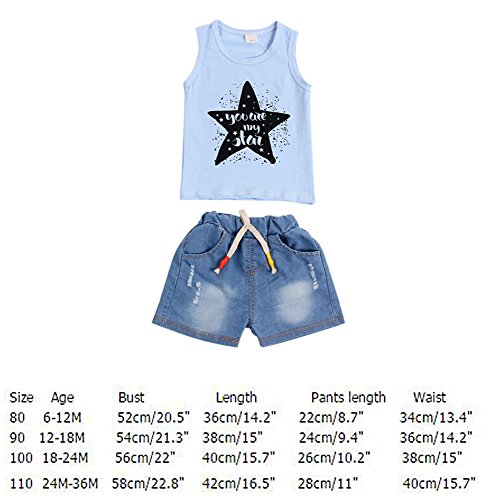 Domybest ベビー服 Tシャツ セットアップ 上下セット 男の子 タンクトップ+ショートデニムパンツ 2点セット かっこいい 星プリント キッズ 赤ちゃん 春 夏 秋 ルームウェア セットアップ お出かけ 普段着 (80(6-12ヶ月), ブルー)