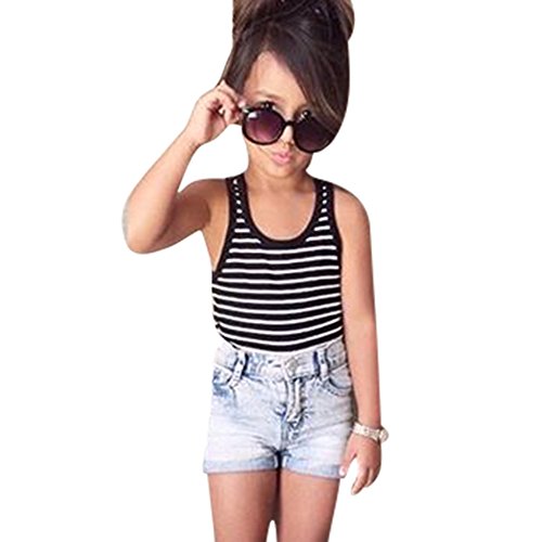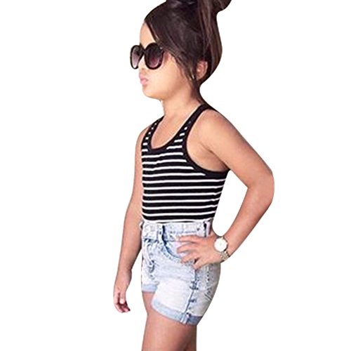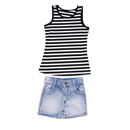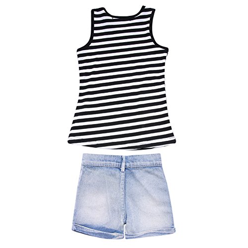 Domybest子供服 女の子 セットアップ キッズ服 キッズTシャツ Tシャツ ボーダーシャツ タンクトップ+デニムショートパンツ 上下 2点セット 赤ちゃん キッズ ガールズ カジュアル お出かけ 普段着 春 夏 (120(5-6歳))