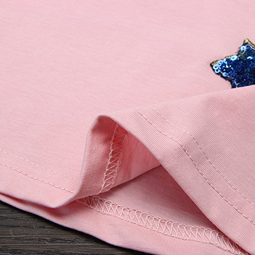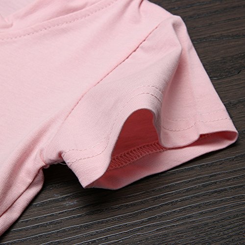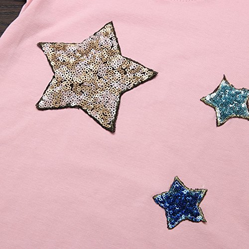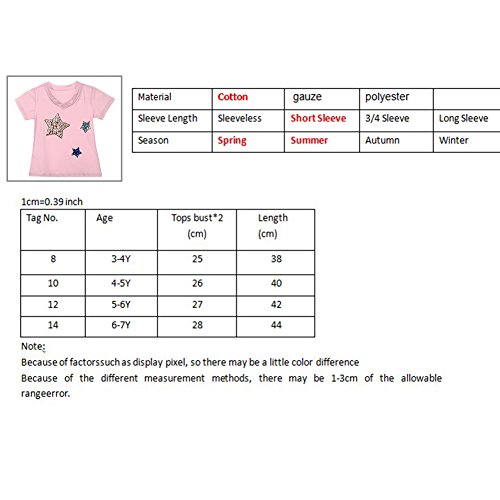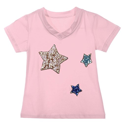 Domybest 子供服 Tシャツ 半袖 キッズ Tシャツ トップス 女の子 ガールズ 星 Vネック 春 夏 秋 通園 日常着 ルームウエア カジュアル (6-7歳, ピンク)
