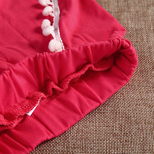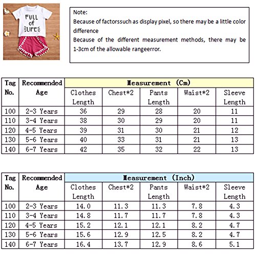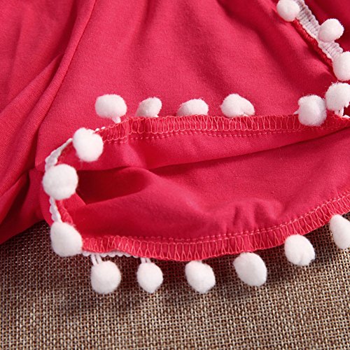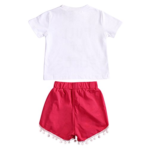 Domybest子供服 女の子 セットアップ キッズ服 キッズTシャツ 半袖Tシャツ+ショートパンツ 上下 2点セット 英字プリント タッセル 赤ちゃん キッズ ガールズ カジュアル お出かけ 普段着 春 夏 秋 (130(5-6歳), ホワイト+レッド)