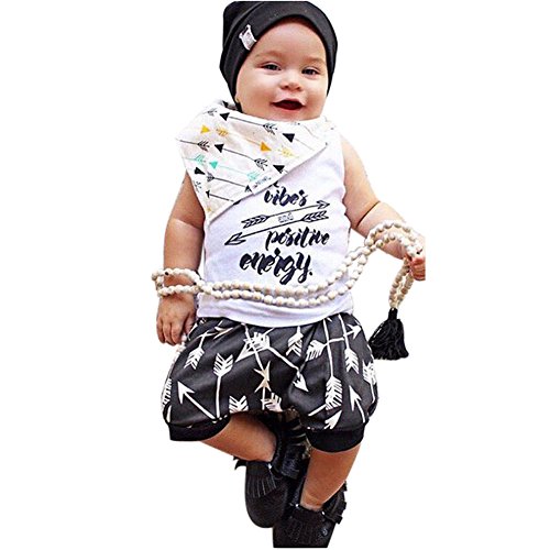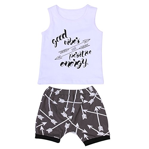 Domybest ベビー服 Tシャツ セットアップ 上下セット 男の子 女の子 タンクトップ+ショートパンツ 2点セット 英字プリント ベスト キッズ 赤ちゃん 春 夏 秋 ルームウェア セットアップ お出かけ 普段着 (80(6-12ヶ月))