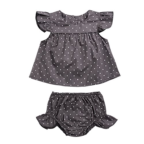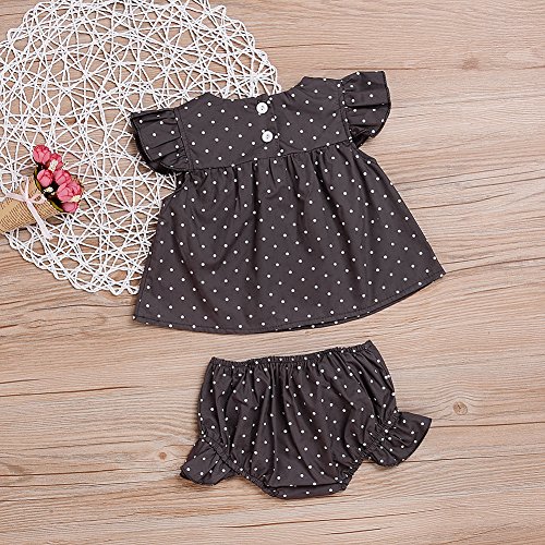 Domybest ベビー服 女の子 セットアップ トップス コスチューム 半袖Tシャツ+ショートパンツ 上下 2点セット ドットプリント 赤ちゃん ガールズ カジュアル お出かけ 普段着 春 夏 (90(12-18ヶ月))