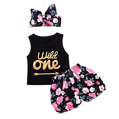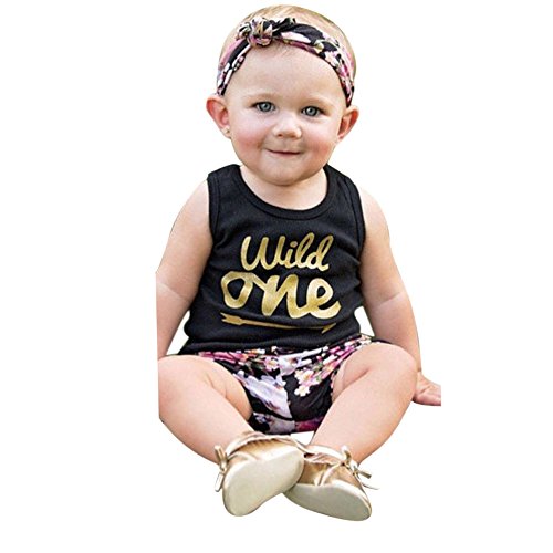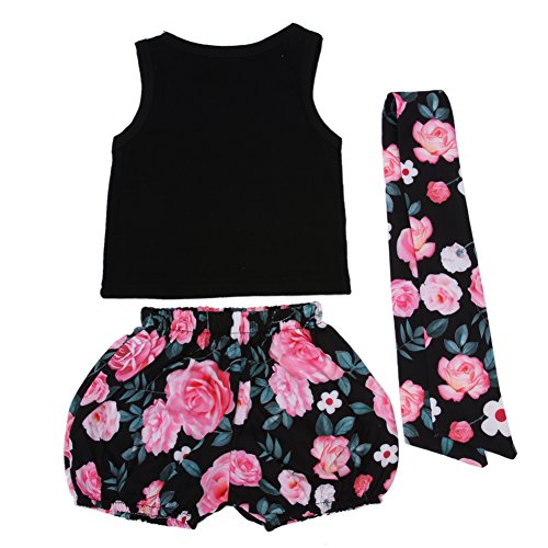 Domybest ベビー服 女の子 セットアップ トップス タンクトップ+ショートパンツ+ヘアバンド 3点セット コスチューム プリント 赤ちゃん カジュアル お出かけ 普段着 春 夏 (110(2-3歳))