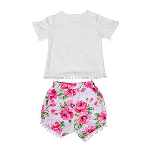 Domybest 子供服 ベビー服 女の子 セットアップ トップス 半袖tシャツ+ショートパンツ+ヘアバンド 3点セット フリル 花柄 赤ちゃん カジュアル お出かけ 普段着 春 夏 (100(2-3歳))