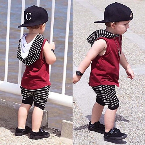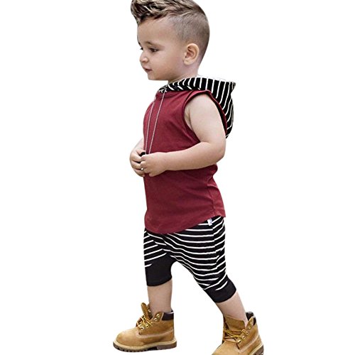 Domybest ベビー服 男の子 セットアップ 上下セット tシャツ+ハーレムパンツ 2点セット フード付き キッズ 赤ちゃん 春 夏 秋 カジュアル ルームウェア セットアップ お出かけ 普段着 (110(2-3歳))