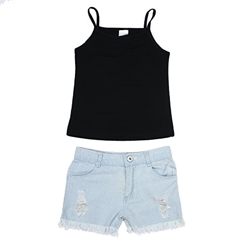 Domybest子供服 女の子 セットアップ キッズ服 キッズTシャツ トップス+デニムショートパンツ 上下 2点セット チュニック 赤ちゃん キッズ ガールズ カジュアル お出かけ 普段着 春 夏 秋 (120(5-6歳))