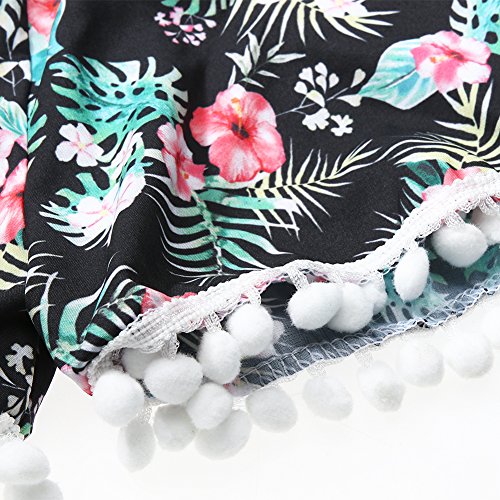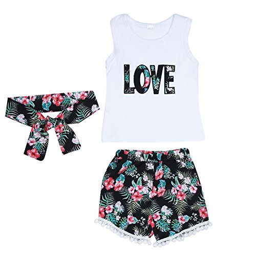 Domybest ベビー服 子供服 女の子 セットアップ トップス タンクトップ+ショートパンツ+ヘアバンド 3点セット コスチューム 花プリント 赤ちゃん カジュアル お出かけ 普段着 春 夏 (120(5-6歳))