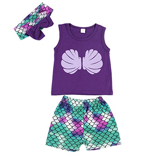 Domybest ベビー服 女の子 上下セット tシャツ ショットパンツ ヘアバンド 3点セット 赤ちゃん 新生児 タンクトップ 夏 蝶結び リボン お出かけ 普段着 出産祝い