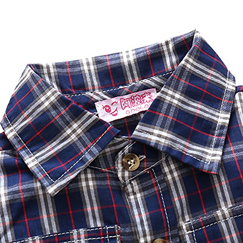 Domybest子供服 男の子 上下セット tシャツ チェック柄のシャツ サスペンダーデニムパンツ 3点セット キッズ アウター ボーイズ 赤ちゃん セットアップ カジュアル おしゃれ 長袖 春 秋 通園 通学 日常生活 チェックシャツはランダムに発送 (100(身長95-105cm))