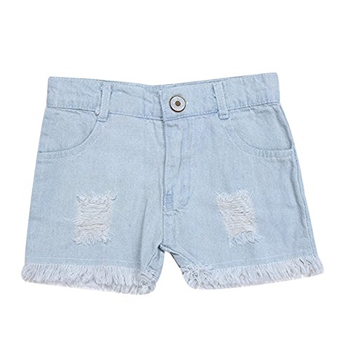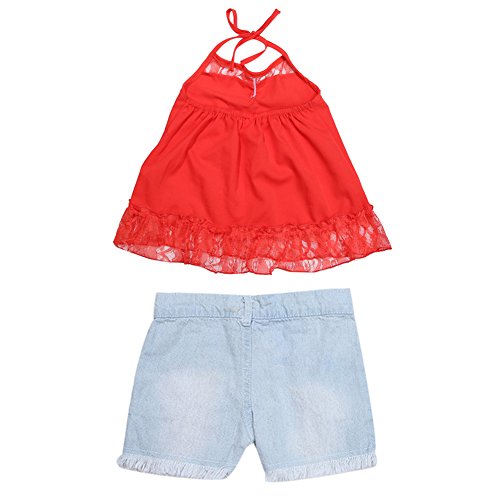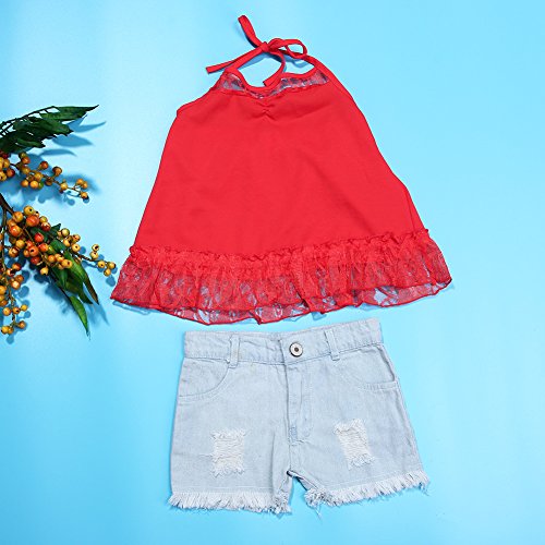 Domybest 子供服 女の子 ベビー服 キャミソールとショートパンツ 二点セットアップ 90-130スーツ ホルターネック レース デニム短パン 春夏秋 可愛いスーツ (120)