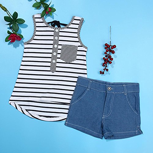 Domybest 子供服 女の子 ベビー服 トップスとデニムショートパンツ 二点セットアップ 2-7歳 ノースリーブ ボーダータンクトップ 春夏秋 (110)