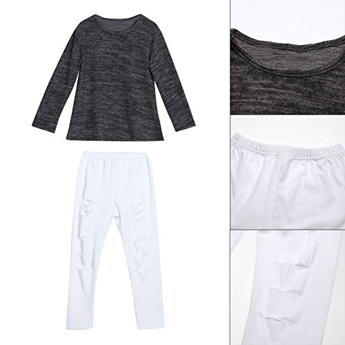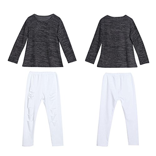Domybest 子供服 女の子 ベビー服 トップスとロングパンツ ダメージ 二点セットアップ 2-7歳 長袖 無地 春夏秋 (120)