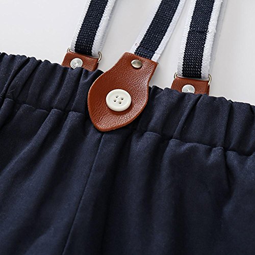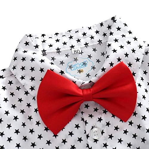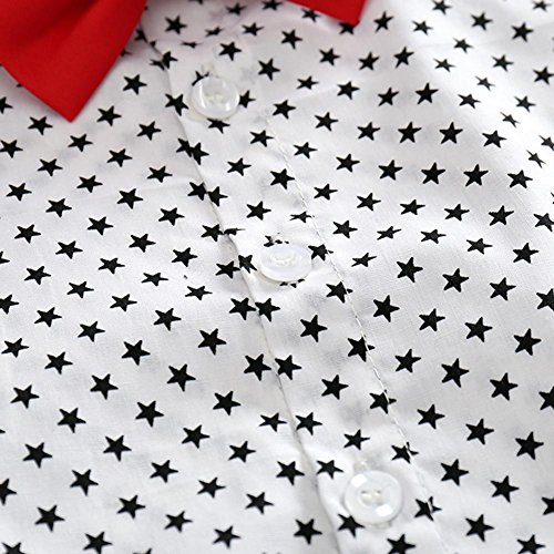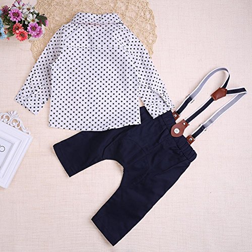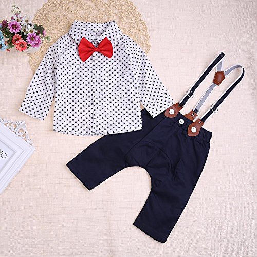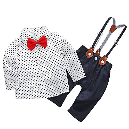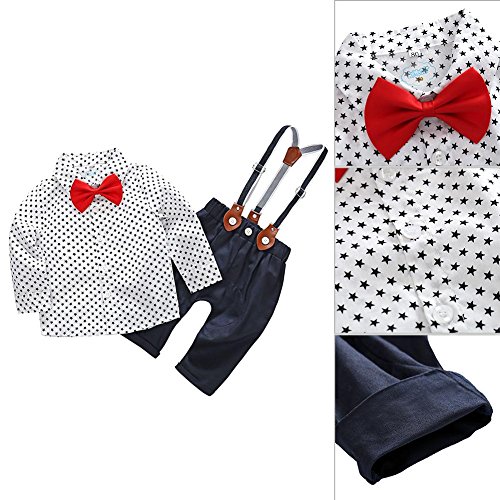 Domybest 春秋 男の子 上下セット コットン 長袖 ドット シャツ ボウタイ つりズボン セット