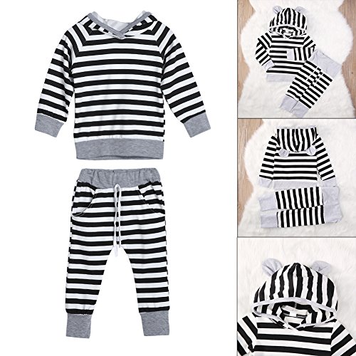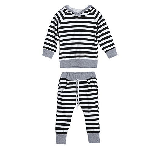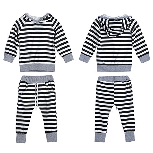 Domybest 春秋 子供服 パーカー 女の子 長袖 ズボン 男の子 女の子 0-1歳 フード付き ストライプ 暖かく保つ 普段着 幼稚園 部屋着 記念日 お祝い ギフト