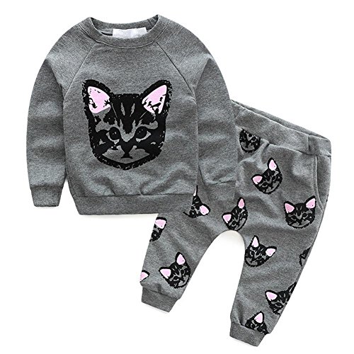 Domybest 女の子 男の子 キッズ キティ 猫 かわいい 子供たち セーター+ズボン ツーピーススーツ 上下セット 長袖