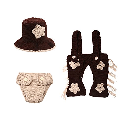 Domybest ニット 新生児 ベビー 写真撮影 帽子 小道具 柔らかい 女の子 可愛い 0-4ヶ月 帽子+パンツ+ショーツ 3点セット 新生児 セーター